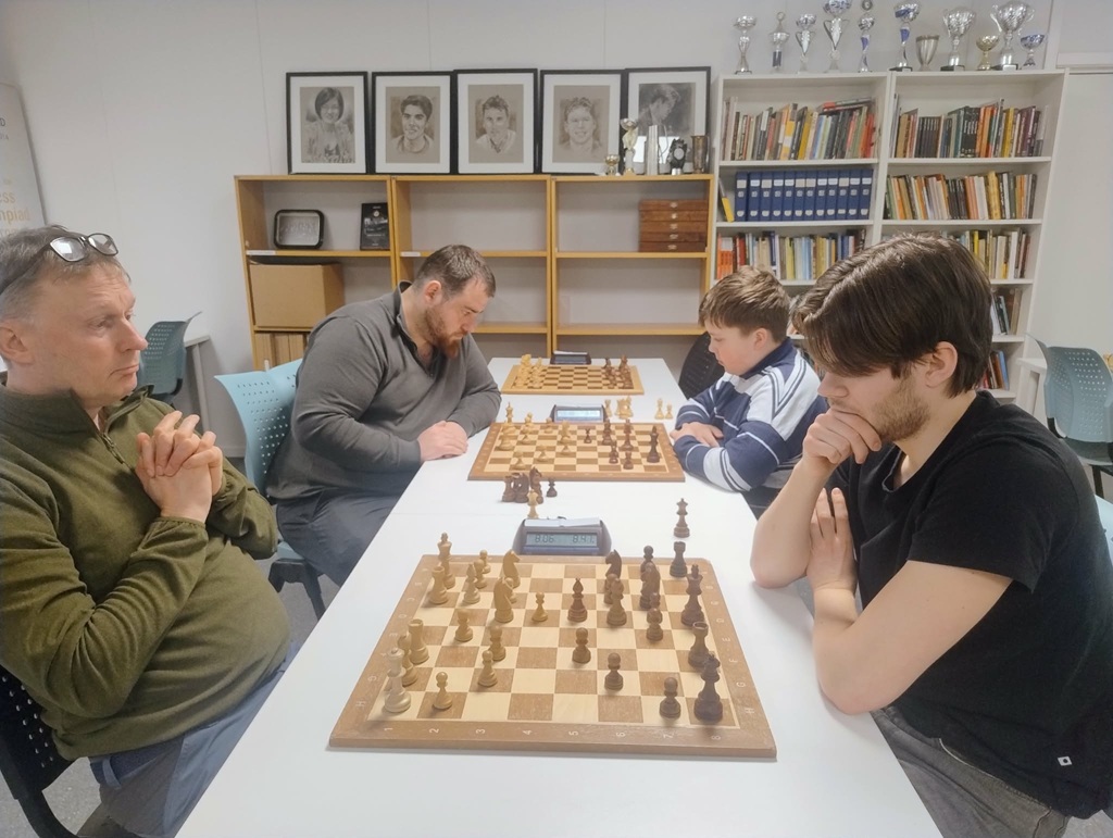 Fjerdeplassen til Henrik Nor-Hansen luktet det pallplass av lang vei, han spilte nemlig mot både August, Pål og Torbjørn og vant altså mot Kong Torbjørn. Dessuten slo han Kassander og Mathias Heitmann og det ble en god dag på klubben for forfatteren i flokken. Fjerdeplasser er ofte sure, men denne smakte nok godt! John Joensen måtte dermed nøye seg med 2.5 av 5 og femteplass, mens Martin Nagy tok 2 av 5 og en sjetteplass. Nå er det Bymesterskapet i hurtigsjakk på kommende torsdag før vi torsdag 23. april har en vanlig lynsjakk igjen der vi venter stort oppmøte. Kommer du til Bymesterskapet på torsdag med 5 runder hurtigsjakk?