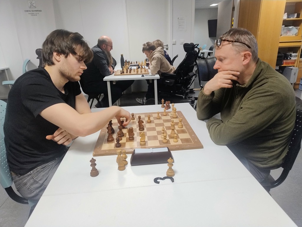 Torbjørns tap mot Henrik Nor-Hansen ville normalt kun først til omkamp mot August, men når og John Joensen kapret et halvpoeng fra Kong Torbjørn ble det med sølv denne gang. Torbjørn slo Martin Nagy, Kassander Norheim og August Solbu og tok dermed 3.5 av 5 mulige. Kommende helg reiser Torbjørn og Co til Stavanger der de skal spille kvalik-kamp til Eliteserien, det blir spennende. Torbjørn er en aktiv gutt som ser mye fotball og som elsker å reise på sjakkturneringer. Han er også glad i å tilbringe tid med venner og studerer statsvitenskap på førsteåret på universitetet. En fin fyr som stiller opp for sjakklubben både titt og ofte – dessuten er han med i styret til klubben vår.