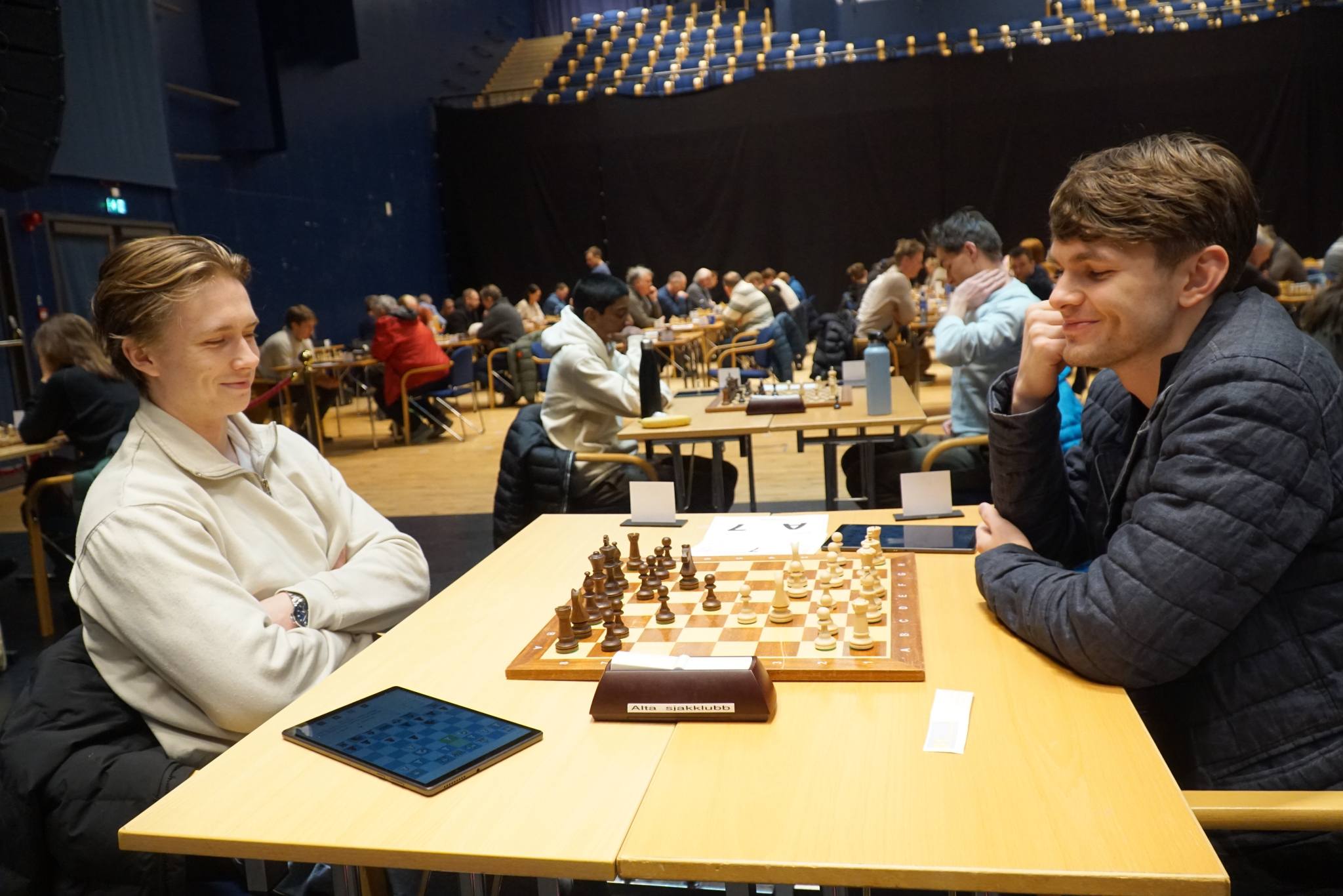 Alta Sjakklubb arrangerer en stor internasjonal turnering med 83 deltakere påmeldt fra onsdag til søndag. I tillegg til en 7 runders sjakkturnering kan de også tilby flere sidearrangementer. Alle brett blir sendt LIVE, turneringen streames og det blir Live studio med sendinger. Du kan følge LIVE-partier på Lichess og resultatene kommer i Turneringsservice. Turneringen starter onsdag 18. februar 2026 og spilles på Campus UiT Alta fra 18. – 22. februar. GM Frode Olav Olsen Urkedal, GM Torbjørn Ringdal Hansen og GM Simon K Williams står på startstreken. I tillegg er en rekke sterke IMer som IM Tor Fredrik Kaasen, IM Mads Vestby-Ellingsen og IM Jovanka Houska påmeldt. Fra Tromsø kommer Pål Røyset, Torbjørn Valvåg, August Solbu og Odd Erling Mikalsen. Torbjørn og August har begge åpnet svært sterkt i denne turneringen der vår Torbjørn har slått GM Torbjørn Ringdal Hansen og August har slått Valentina Verbin (2140) og spilte remis mot Andre Z. Nielsen med 2300+. Vi ønsker både Torbjørn og August lykke til i de tre siste rundene!
