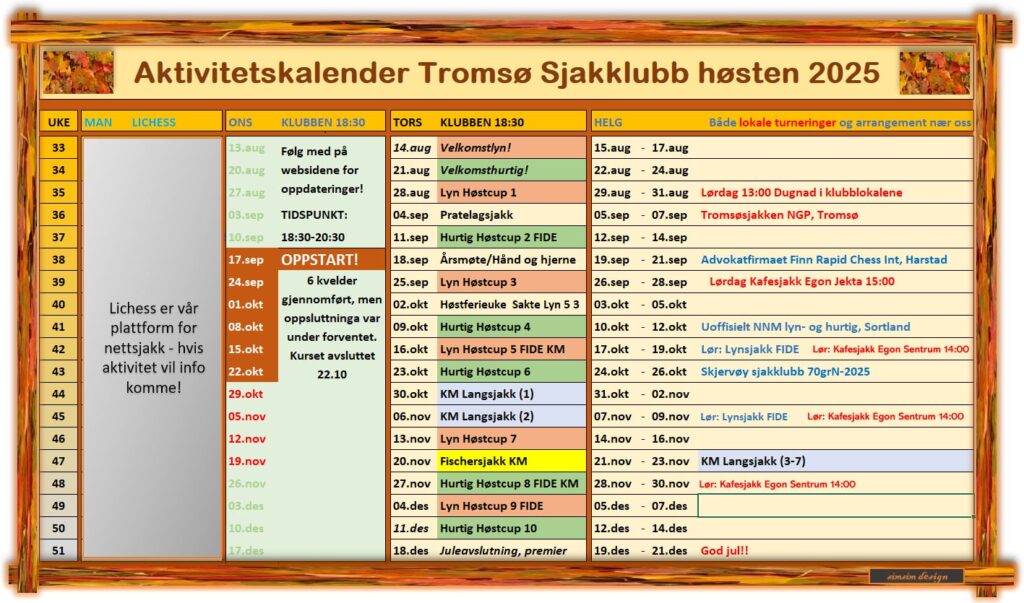 Klubbmesterskapet i Hurtigsjakk 2025 spilles torsdag 18:30