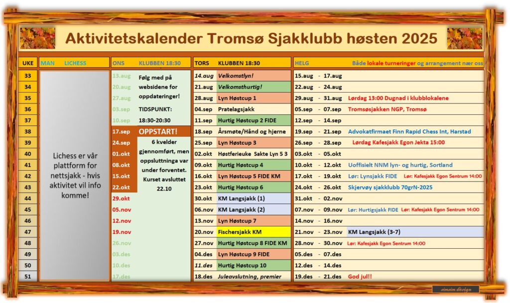 Pål leder Høstcupen klart og spilte hjem en andreplass et halvt poeng bak August på 4 av 5. Pål spilte opp en 2141-prestasjon og slo Bjørn Marienborg Strøm og sønnen Henrik samt Frank Remman. Remisene hans kom mot Frode Bull Jæger og Francisco Santana Molina. Så to spillere gikk tapsfri gjennom feltet – August og Pål. Pål, August og Frank dro alle til Skjervøy denne helgen sammen med blant annet Henrik og Monika Machlik og det er fint hvordan Pål kjemper fortsatt i sitt 52. leveår over sjakkbrettet. Han har betydd mye for den oppvoksende generasjon i åretier i sjakklubben og gitt spillere som Gunnar Lund, Benjamin Halvorsen, Mads Vestby-Ellingsen, Tor Fredrik Kaasen, Endre Machlik, The Twin Sisters, Evsuld, Sivert og August nyttig lærdom i deres reise over 2000 i Elorating. En legende over brettet som ble både Kadett- og Junior-Norgesmester i sin tid!