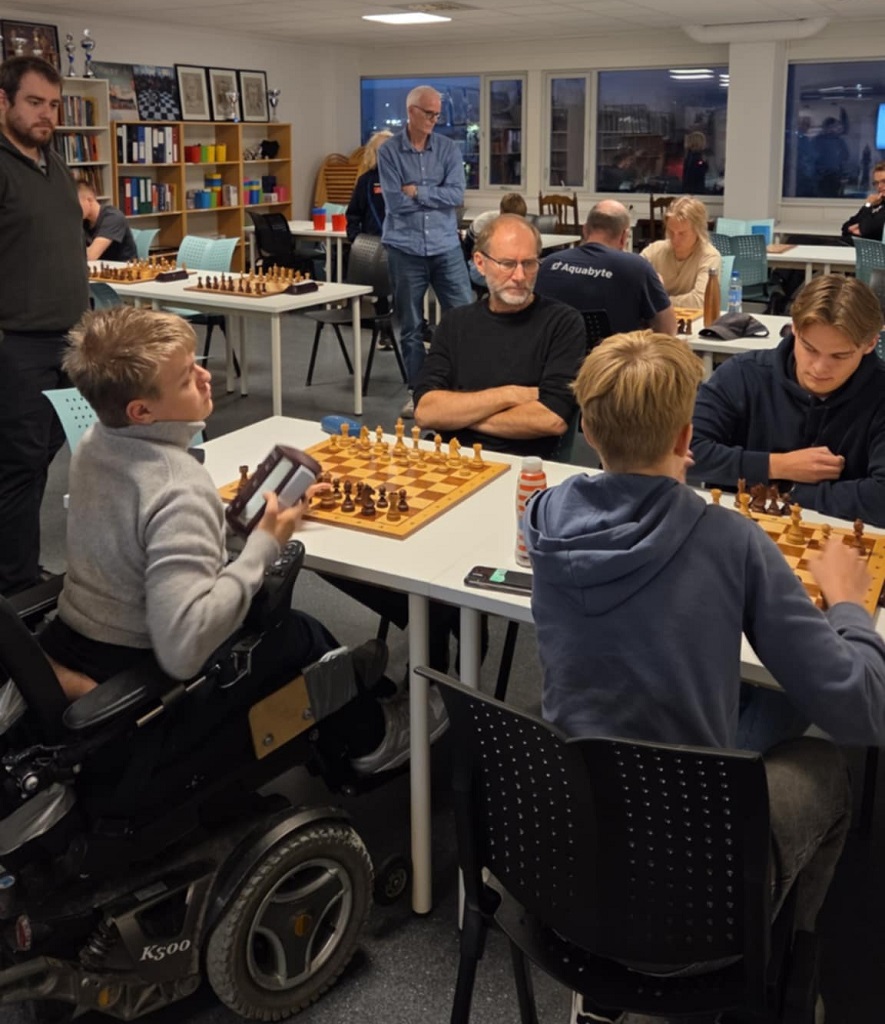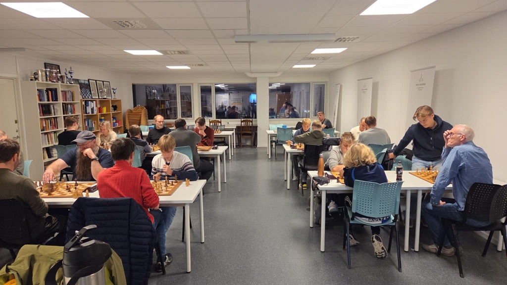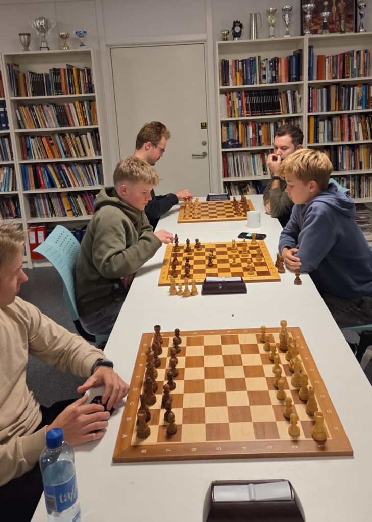 Det ble altså et sjeldent godt oppmøte med 24 stykker som kom på klubben for å spille sjakk. To nye og en gammel traver som dukket opp på gjengrodde stier. Kjell Arne Jensen spilte nemlig i klubben vår for over 30 år siden, men har vært et sjeldent syn den siste tiden – desto mer moro at han dukket opp. Henning Anti var ellers et hyggelig bekjentskap som prøvde seg på onsdagskurset og absolutt viste ferdigheter, så han hoppet rett inn i klubblivet – sprekt! Henning har spilt mye nettsjakk og gjorde det styggfint med en flott 10. plass denne kvelden. Ventsislav Nikolov (2218) var kveldens høyeste rangerte, men det skulle vise seg at han har vært passiv en periode og han fikk det tøft mot de unge, lovende i klubben og rakk ikke helt opp. En svært hyggelig og jovial professor fra Bulgaria som gjesteforeleste på universitetet nå et par uker i september og som synes vi hadde et veldig fint klubblokale med bøker etc. Benjamin og Birk dukket sent opp og bidro til en sterk og tallrik turnering. Åge kokte kaffe og Bjørn sørget for kjeks. God stemning var det og folk trivdes.