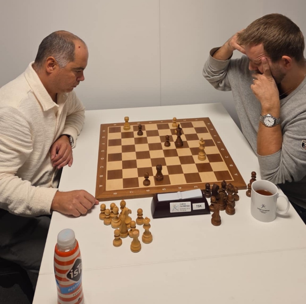 Professor Ventsislav spiller her mot Åge Dyb som sto for kaffen denne kvelden