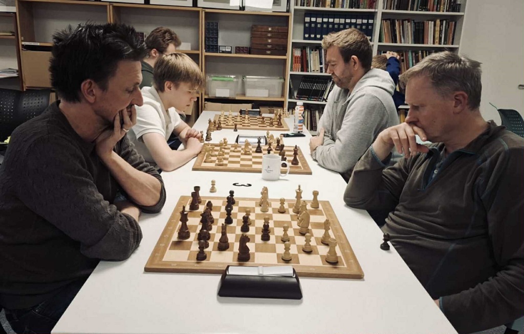 Vinjar kapret seieren på torsdag i Tromsø sjakklubb foran Pål Røyset og Frode Bull Jæger, med formspilleren August Solbu på fjerdeplass. I siste runde var det finale mellom Vinjar og August og her trakk Vinjar hvite brikker og det er en klar fordel mot en kreativ angrepsspiller som August. Kort fortalt kom Vinjar klart best ut av åpningen, men August overlevde midtspillet og kom over i et noe dårligere sluttspill der han irriterende nok tapte på tid. Vinjar var en verdig vinner denne kvelden og avga bare en remis på de fem rundene. Toeren Pål spilte remiser mot både Vinjar og August, mens treer Frode spilte en remis og tapte for Pål. Henrik Nor-Hansen hadde trolig sin beste hurtigsjakk i Tromsø SK noensinne med en sterk 5. plass som resultat. Når så også Åge Dyb og Jens Christian L. Opdahl også hadde sterke 1800+ resultater og Skjervøys Øivind Jakobsen må også nevnes for et godt resultat. Av de unge i TSKU var Ask og Mathias skarpeste knivene i skuffen denne gang. Når Arve Skar prøvde seg for første gang i klubben fra onsdagskurset, og tok poeng – så er klubbkvelden lett oppsummert med sine 20 deltakere!