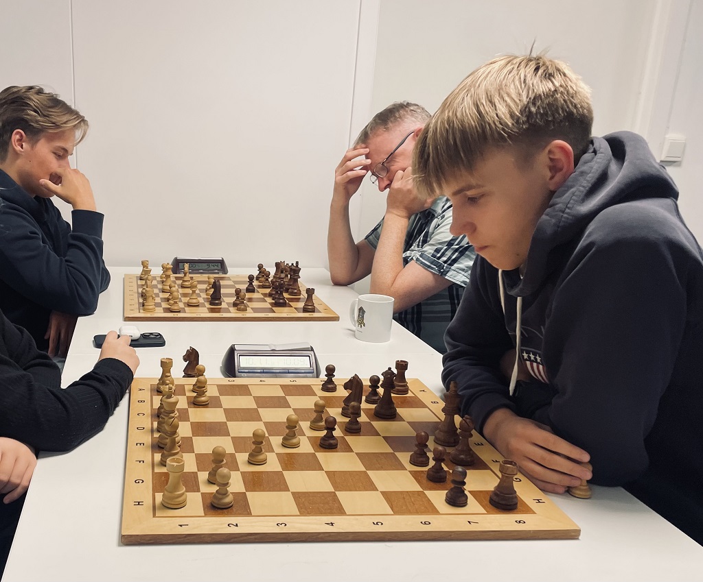 Torbjørn Valvåg og Henrik-Nor Hansen har seg en dyst over brettet på klubben