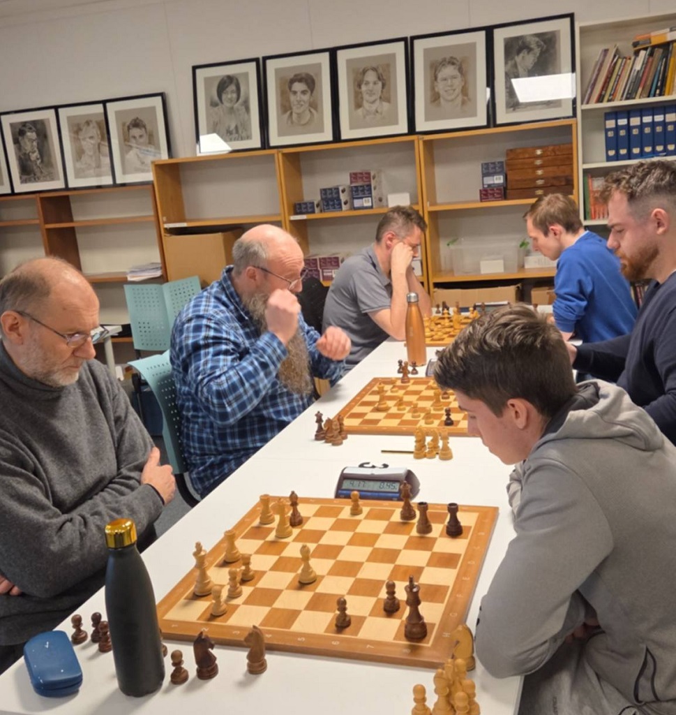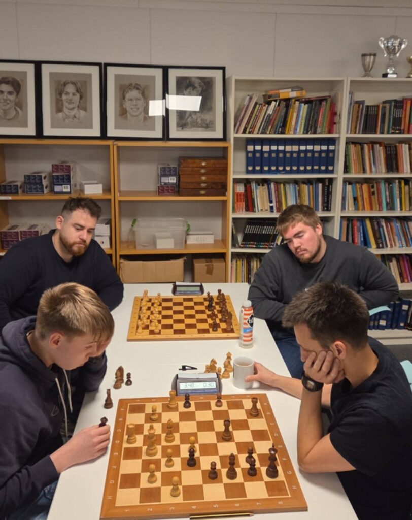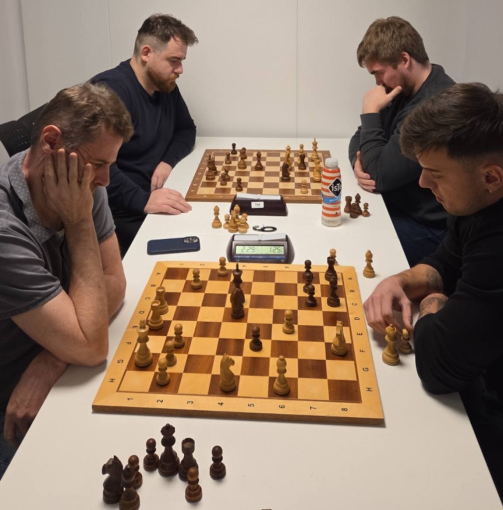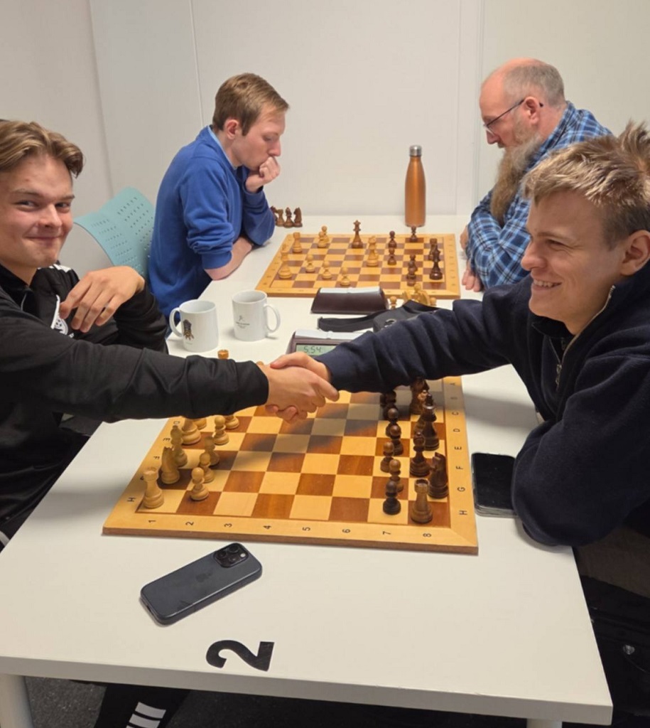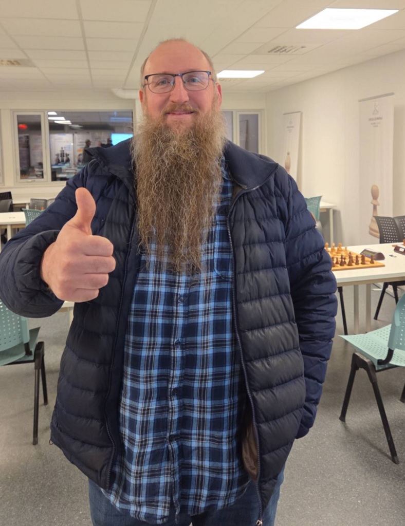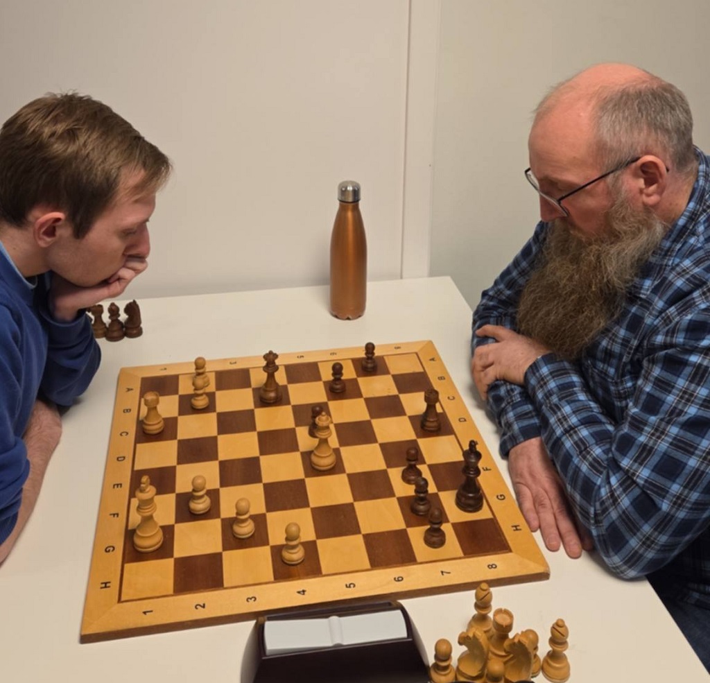 Pål og August var ikke der, men ellers var alt som kan krype og gå av aktive spillere på plass. Vi kunne håper at mesterspillere som Monika Machlik, Mats Bergvoll og Frode Bull Jæger spilte – men et oppmøte på 18 deltakere var bra. Klubbmestertittelen i Tromsøsjakklubb skinner fortsatt og torsdags kveld skulle den gå i arv videre fra August til en ny kar. Ny og ny, fru Blom – torsdagens vinner John Joensen har tre mesterskap i hurtigsjakk fra før, ett Bymesterskap og to Klubbmesterskap 2011 og 2022. Men i år var det ekstra sterkt og smakte derfor ekstra godt. Favoritter denne kvelden var Mathias Lind Schouten (2068), Torbjørn Valvåg (2094)og Vinjar Hammari (2108) og det virket åpent hvem av dem som skulle vinne. Men Mathias viste rust etter en lang høst med lite klubbspill fra start og tapte 1. runden for Henrik Nor-Hansen og ble satt på sidelinja. Torbjørn fikk det tøft på slutten der han kun tok 1/3, mens Vinjar tapte for vinneren og remiserte Torbjørn. Dermed ble det en litt heldig og veldig god John Joensen som gikk helt til topps foran overraskelsesmannen Birk Gulljord. Birk hadde for øvrig en klart vunnet stilling i oppgjøret mot John Joensen i fjerde runde og kunne fort tatt det hele! Mathias endte på fjerdeplass med 3.5, mens Torbjørn kom på femteplass med 3 av 5 foran et koppel av sulte sjakkspillere på samme poengsum.