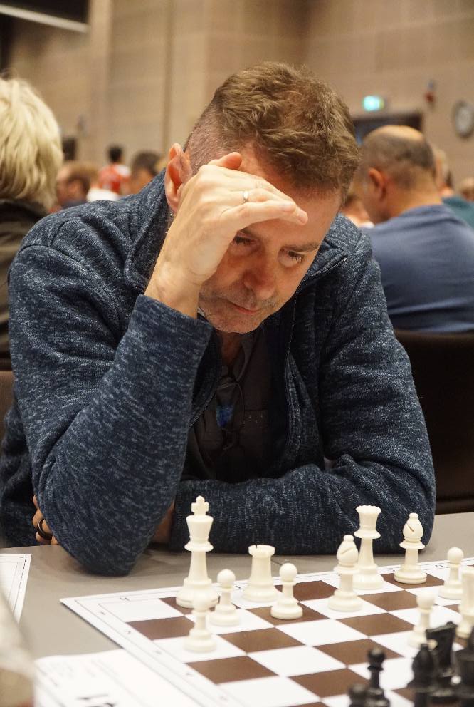 Sjakkpappa Ken Ronny Schouten åpnet med en sterk remis – han har ofte noe på gang under NM!