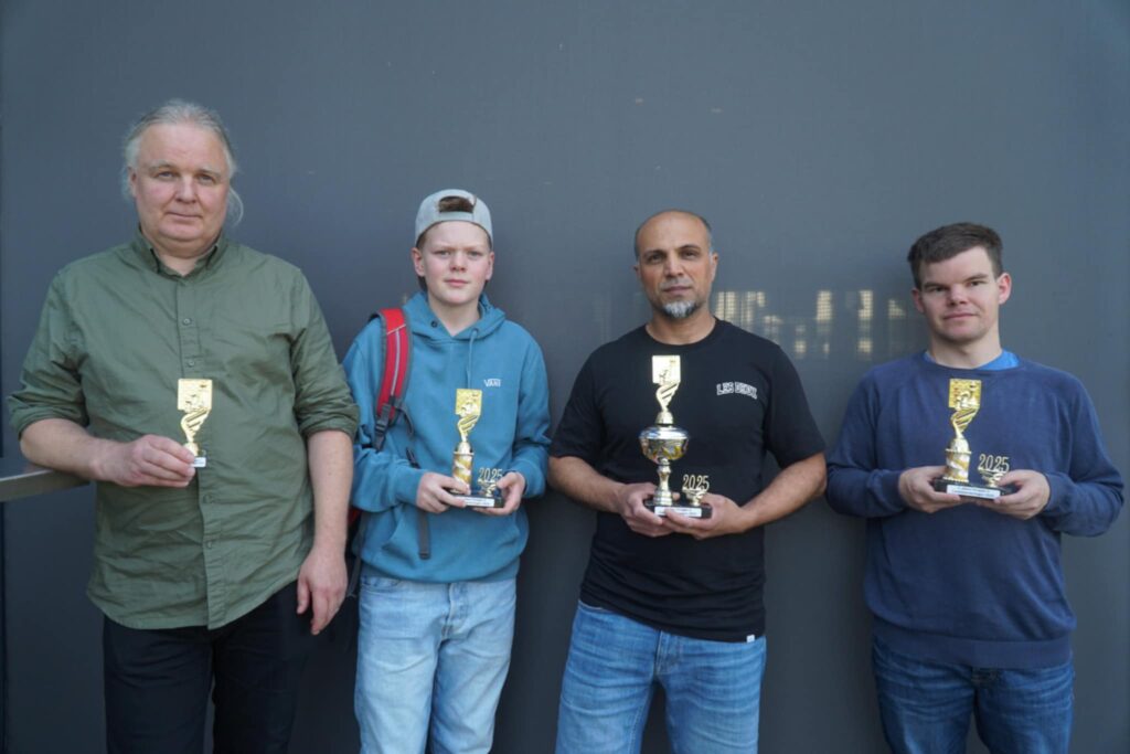 Jauda – det er godt med Gauda. Skal noen lykkes må andre ta hverdagskost eller bite i det sure eple. Alle er ikke i form samtidig og av våre i de tre «tall-klassene» var det bare Øystein Rostad i Klasse 3 som virkelig kunne si seg fornøyd. Han tok til gjengjeld 6 av 9, en sterk 8. plass blant hele 84 spillere og en pen 1682-prestasjon. Han tar med seg gode minner, 17 Elopoeng og en porsjon sjakktillit hjem til Tromsø. Dessverre tapte han en kliss vunnet stilling i siste runde – ellers ville han snust på pallplass, men kongen hans kom under ild når seieren var nær… Sjakkpappa Ken Ronny Schouten i Klasse 2 tapte også i siste runde og tok 3.5 av 9 og endte opp litt i Elo. Maria Sæther endte opp med 3 seire etter 9 partier under NM og gjorde det sånn passe i Klasse 3. Sønnen Birk Sæther Rostad i Klasse 1 tapte i siste runde og fikk dermed akkurat ikke 50% score med sine 4 av 9. Mye rust etter et år uten mye trening og spilling må ta skylda for det. Men det så ut som Birk koste seg på tur i Bergen og hans sølv fra pratelagsjakken for lag sammen med Mathias & venner kan ingen ta fra han – bra, Birk!
