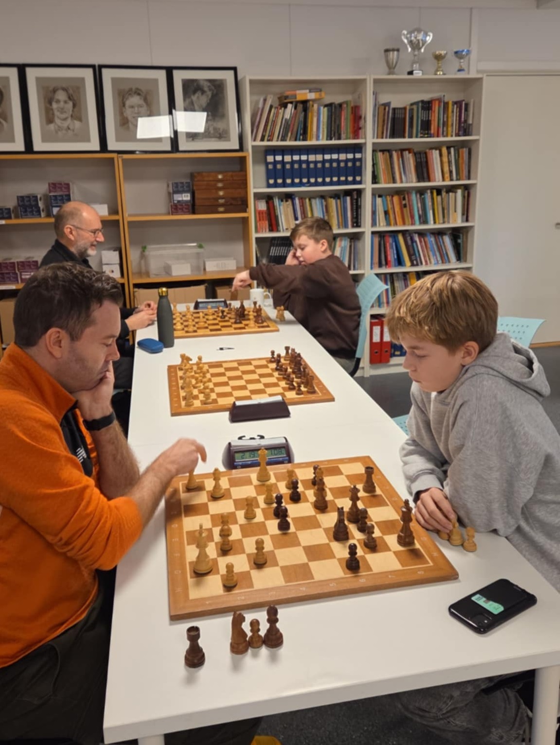 Henrik tok 6 poeng og vant de to siste partiene sine. Det var den høyere rangerte Daniel Hoel Andersen som tok støyten. Henrik vant også oppgjøret mot navnebror Henrik Nor-Hansen og kunne fort gjort det enda bedre om det ikke hadde blitt et feilskjær mot pappa Bjørn. Ja, for det rapporteres fra det Marienborgske hjem at Henrik er klart best i sjakk på hjemmebane, mens pappa er klart best i fotball fortsatt. Ja, for de er begge TUIL-entusiaster og Henrik, som går på ungdomskolen, klarer å forene satsing på sjakk og fotball på en god måte!