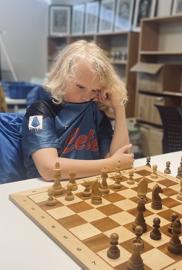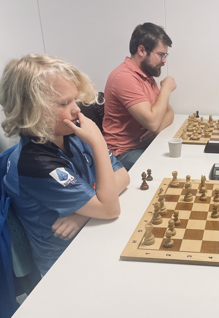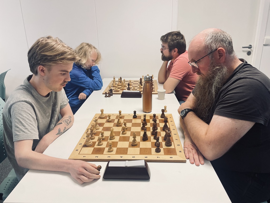 Mattias smelte til med tre strake seire fra start og underveis slo han både Benjamin og August en gang hver. Han tok 8 av 12 poeng, en solid poengsum på klubben der mange kanoner – som Geir-Magne Lorentsen, John Joensen, Robert Jægtvik Aas og Åge Dyb Hagerup – kom og ønsket å være med i miksen! Mattias slo sterke John Joensen to ganger og forfrisket med en seier mot Henrik Marienborg Strøm også. Vi kommer helt sikkert til å få se mer til Mattias på klubben i høst, han er nemlig sjakkfrelst og spiller mye på nett og er den sterkeste spilleren som bare har kommet til klubben fra nettspill – og imponert der! Med nesten 1900 i langsjakkrating, blir det spennende hvordan han gjør det i årets Tromsøsjakk der han nå er påmeldt.