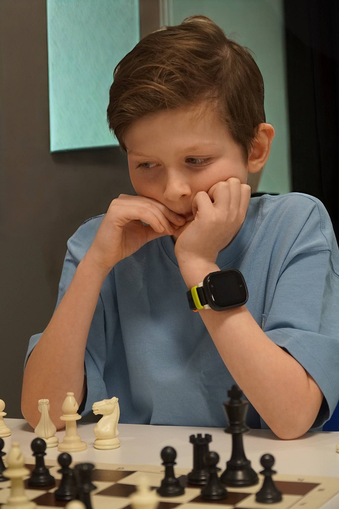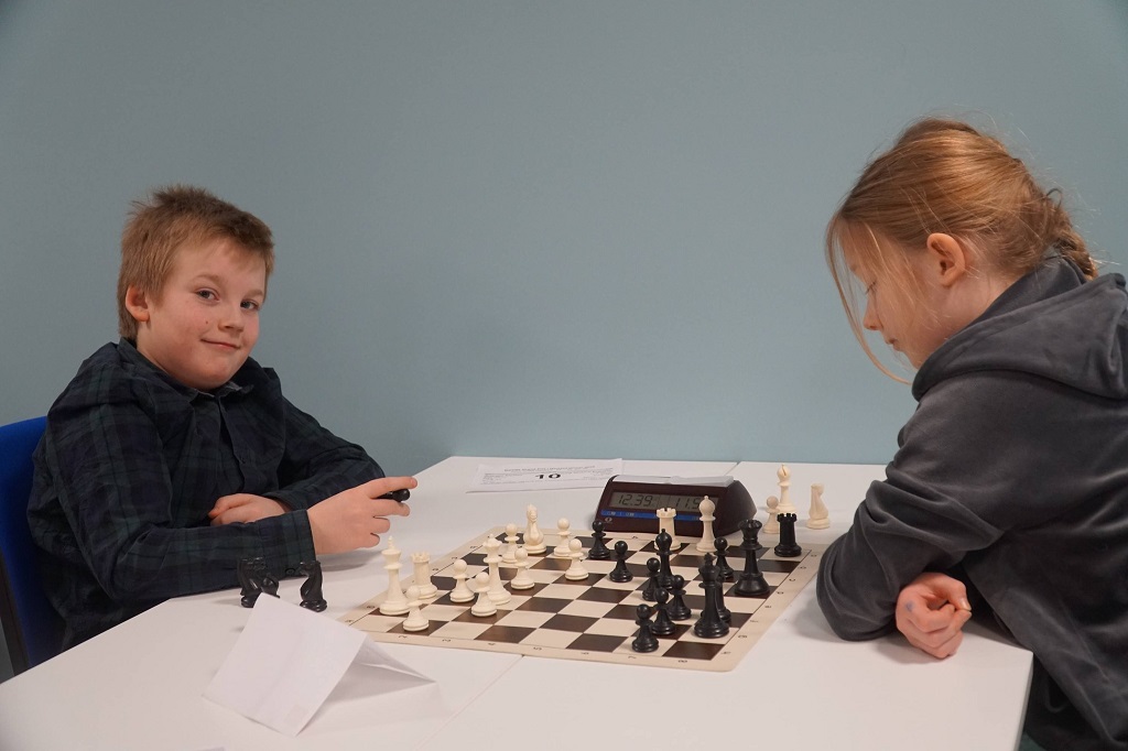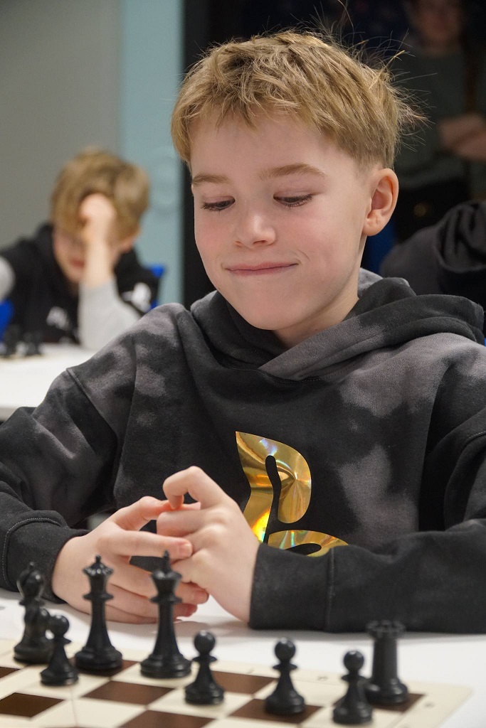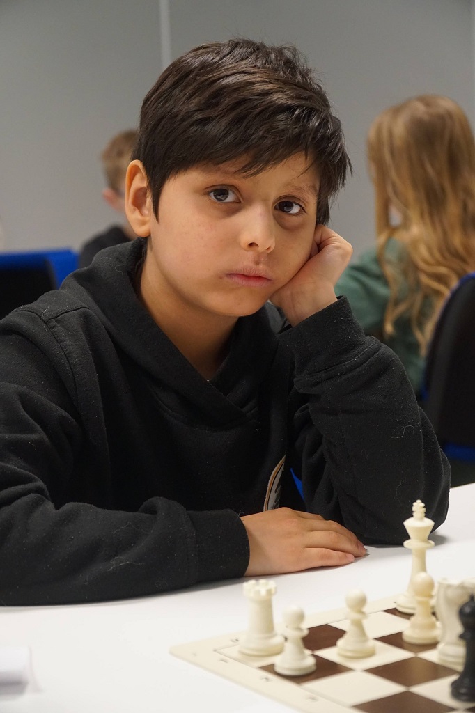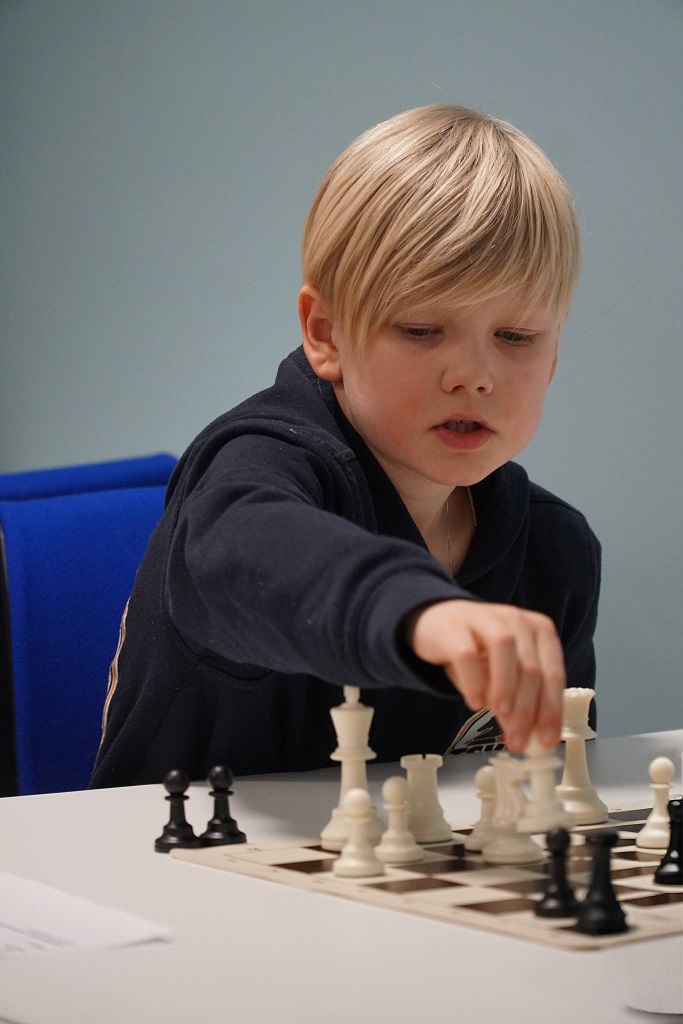 Her ser vi Milian som har fingenseren på seg – vi spiller jo konkurransesjakk!