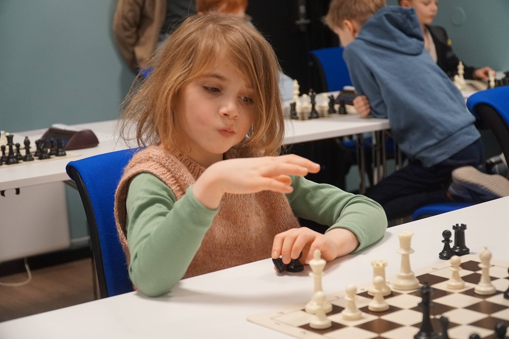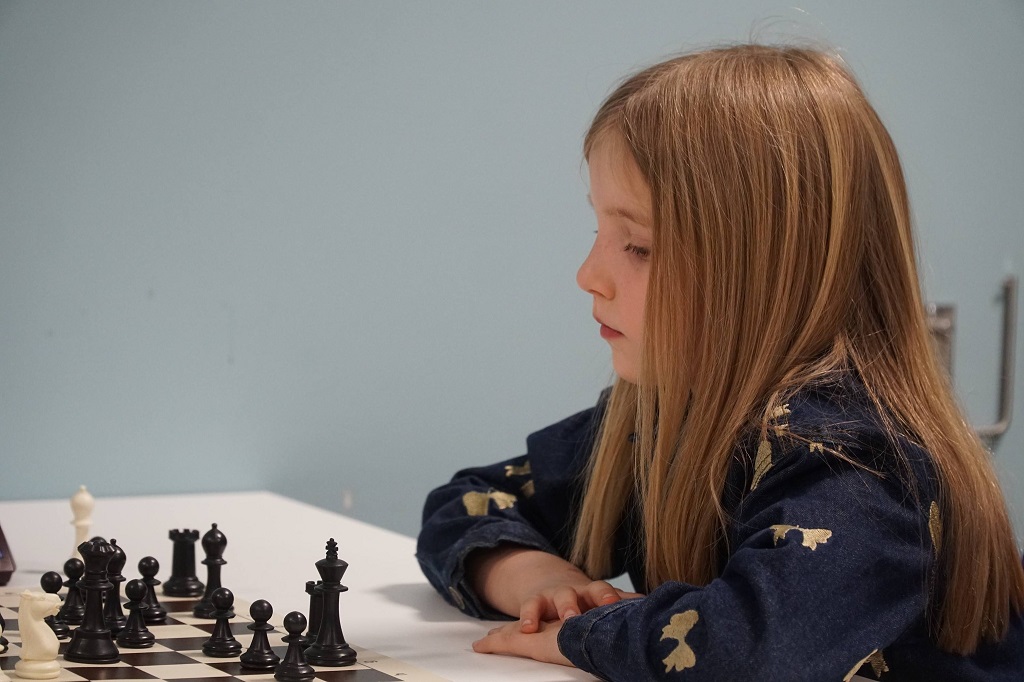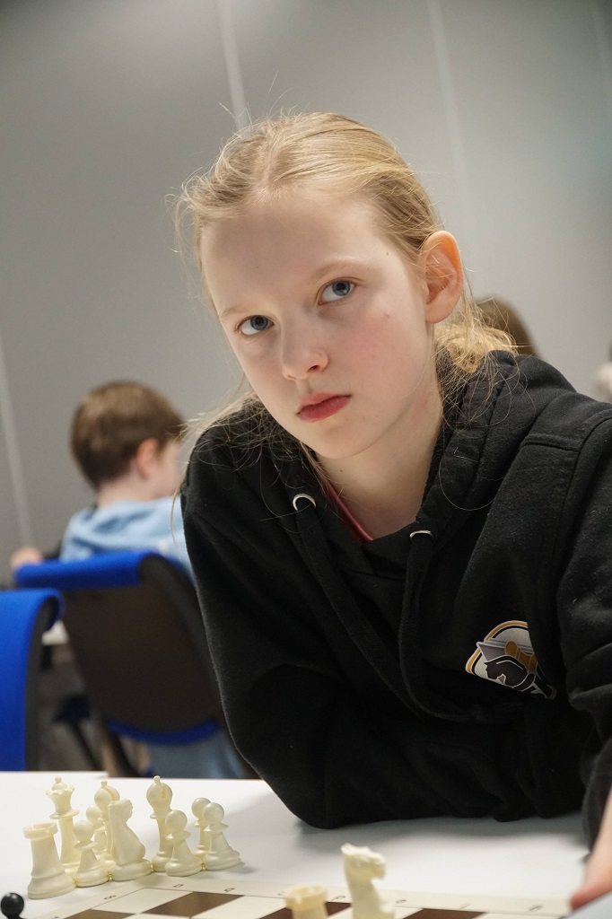 En må konsentrere seg i sjakk – da gjelder det å ha et godt brettblikk – det vent Narviks Estelle!