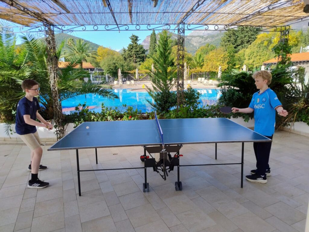 Astor Moe Maurstad spiller bordtennis med August og de kosete seg i Montenegro tross tøffe sjakktak